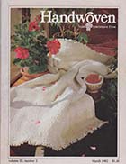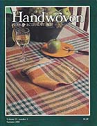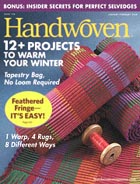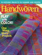 Since 1975, Handweavers around the world have been celebrating the time-honored craft of weaving through the colorful pages of Handwoven. Filled with beautifully photographed projects for the four- to eight-shaft loom with step-by-step instructions, Handwoven also includes thoughtful articles on designing with color and yarn, planning projects, and finishing pieces. Regular features on weaving in other cultures and times, profiles of weavers, tips and techniques to make weaving easier, product information, book reviews, and a calendar of events keep alive the fascination of creating cloth and inspire us to take shuttle in hand and weave. Published five times a year in September, November, January, March, and May, Handwoven is a magazine you'll read from cover to cover and refer to often in the years to come.