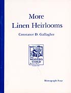 This book is the follow-up to the author's earlier book Linen Heirlooms published in 1968 and documents a collection of 18th and early 19th century linens given to her by other guild members. There are twenty-two different patterns in this collection. These include 4, 8 and 10-harness Point and Turned Twills, 4 and 5-harness Bronsons, 4-harness Overshots and 4 and 5-harness M's and O's. Each of the pieces is documented as to its origin and the author's drafts and designs have been included.