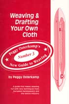 The third book in Peggy Osterkamp's New Guide to Weaving series, Weaving and Drafting Your Own Cloth, guides the reader through every step of the weaving process. While it is an excellent book for beginning weavers, experienced weavers will want to keep a copy of this by their loom as a very handy reference book. Unlike other books that mention some problems that can occur when weaving, this book is an exhaustive analysis of potential problems, explaining why and when they can occur and then suggesting solutions for dealing with them. As well as an extensive chapter on troubleshooting, potential problem areas are discussed throughout the book.