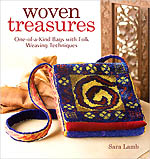 Woven Treasures includes an overview of Lamb's recent bag series; an introduction for the weaver to the process of concepting and planning a woven piece; a technique section of 6 folk weaving tutorials, such as hand-manipulating weaving techniques with a multi-technique sampler that gives basic instructions for soumak, twining, cut pile, cardweaving, inkle weaving, and plain weave. In addition there are project instructions for 7 hand-woven bags plus sidebars sprinkled throughout the book include the history of folk weaving techniques, as well as Lamb's signature beaded and stitched embellishment designs.