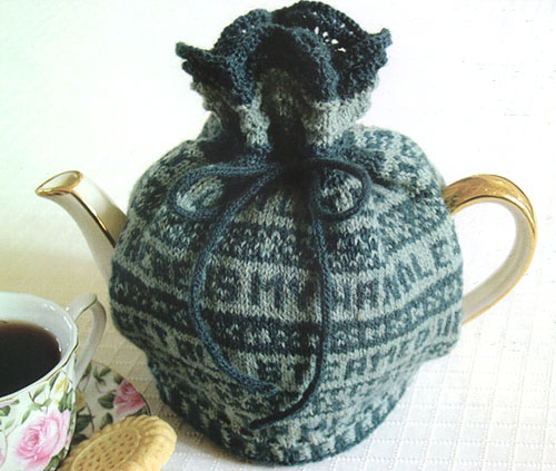 This unique Fair Isle Tea Cozy will keep your teapot stylishly warm and is knit using Jamieson's Shetland 2-ply Spindrift 100% wool yarn. Designed by June Dickinson, it has the "Teapot Song" in letters on the sides (ie. I'm a little teapot, short and stout here is my handle...) Yarn kits that also include the pattern are detailed below.