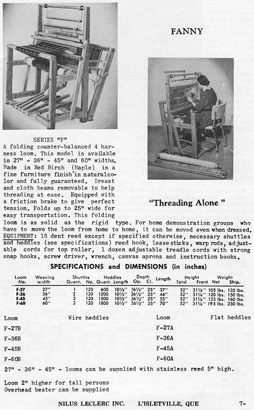 The Leclerc "F" type, Fanny and Fanny II Counterbalance Looms