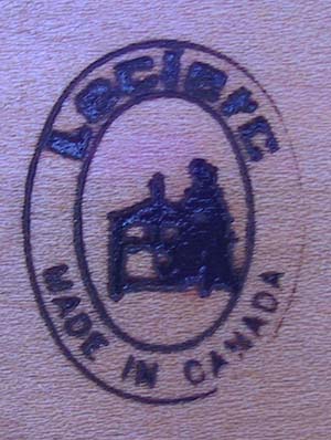 On some looms Leclerc used a modified logo sticker that combined the Nilus Leclerc logo, the loom model and the manufacturing date in one. Unfortunately the numbers written on these stickers were often to faded to read which is probably why Leclerc switched to the new stamped design in later years. |