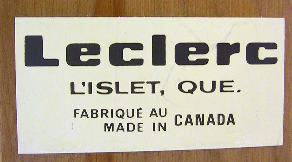 In 1965 Leclerc switched the sticker design to a newer style giving more company information. The includeds the same model, weaving width and manufacturing date information as the previous.