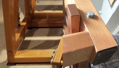 The folding back beam on the F-type looms originally had a very thick cross beam, the same sized beam as the one used on the bottom of the loom that the treadles attach to.