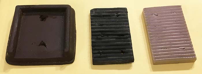 Over the years Leclerc has changed the rubber/nylon foot pads that have been used under the loom feet.