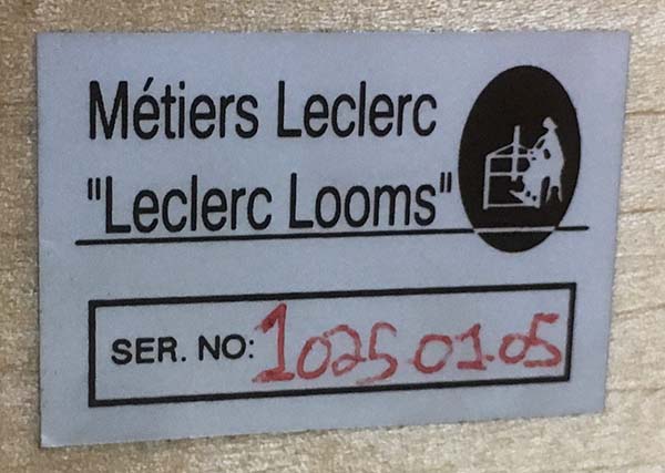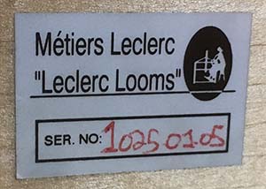 Note that while it is pretty common for the Serial Number Tag described below to be lost over time, it is very, very uncommon for the "Nilus Leclerc" company label to be missing. Often looms without this label are not actually Leclerc looms but home made copies of Leclerc designs. Many of these copies use Leclerc metal parts like the Brake, Warp Advance and Beam Ends as well as parts like Shaft Frames combined with the wooden frame parts the woodworker is able to make themselves.