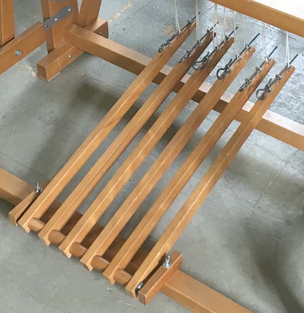 For those who don't have a lot of lower body strength but want to weave with more than 4 shafts, the Leclerc "back-hinged" design increases the weavers leg leverage producing a wide, clean shed with much less effort than conventional front mounted treadles. The Back-Hinge Treadles are available on the 8 shaft versions of the Artisat and upgrades for older Artisat looms without the feature are available. See how Back-Hinge Treadles operate in the video here