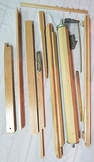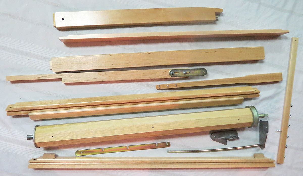We only list a small selection of the parts available for Leclerc looms on this site but we can also provide a very large number of wood and metal parts that make up the frame and operating mechanism of most loom models. These genuine Leclerc quality components include things like lamms, frame beams, treadles, warp and cloth beams, counterbalance rollers, breast beams, beater swords and sleys, folding back beam supports and much, much more. (Click on the picture to the left to expand)