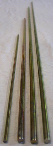 These round steel rods are used to tie the warp threads to the canvas apron on the warp and cloth beam or to beam sticks. The same bar is used to attach warp threads to the sectional warping beam if the loom is so equipped. The standard warp rods shipping with looms for years have a 5/16" diameter. For weaving very narrow projects that can put pressure on a small area of the warp rod, a heavy duty version with a diameter of 7/16" is also available in some lengths. Normally 4 warp rods are needed for each loom (2 on the cloth beam and 2 on the warp beam) and they are tied together using lashing cord.