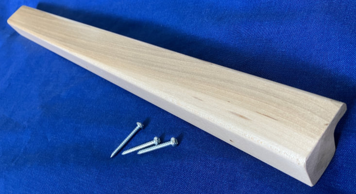 The Shuttle Race is a piece of shaped wood that wraps around the lower Beater Batten (ie the Batten Sley) to provide a flat surface that extends out toward the weaver and sits below the warp threads to support the boat shuttle as it travels through the shed. It is angled to provide a level surface when the beater is pushed towards the castle.