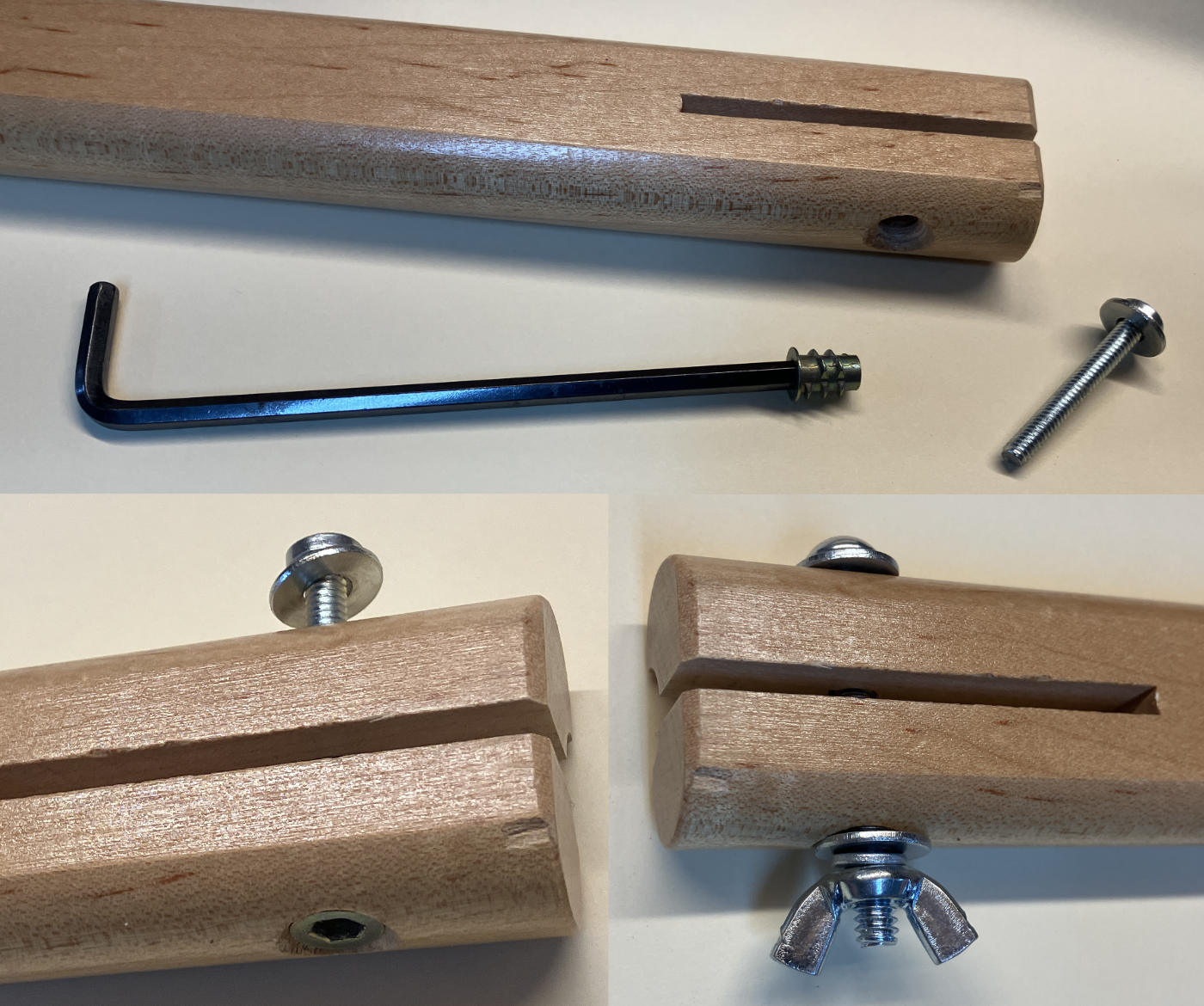 On most newer looms, Leclerc used 2 inch long screws (length of screw shaft excluding screw head) but on some older looms slightly longer 2 1/2 inch screws were used. The longer ones can be used on any Artisat model although the hole depth in the frame may have to be drilled a little deeper if 2 inch screws were originally used. The longer screws may also help in tightening up the Breast Beam if the existing hole has become worn over time.