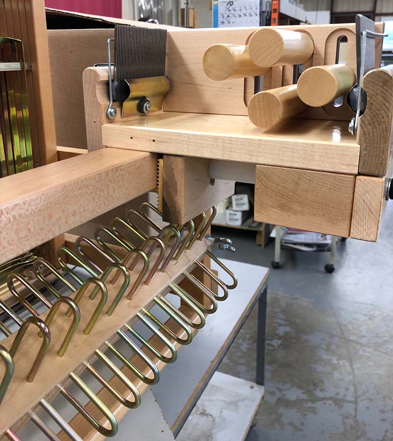 Each kit contains a set of Maple hardwood dowel extenders that are inserted between the warp beam and the sectional rakes. On some of the wider looms, wooden blocks are also provided to support the sectional rakes between the dowels.