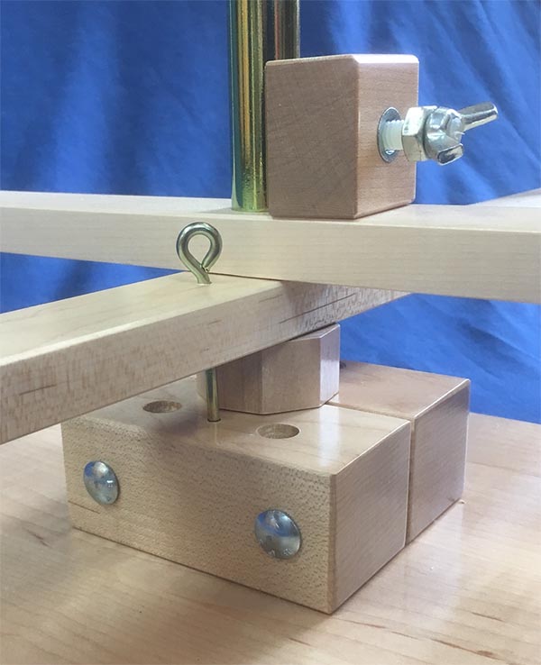 These multi-functional "helpers" are like a second hand for a weaver! Used as a shaft stabilizer and a support for the lease sticks and raddle, these threading helpers hold the cross at a convenient height during the threading process. Like the Shaft Stabilizer, they can also be used to lock the shafts in place and can be used behind the loom.