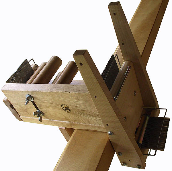 This extension, with one comb close to your warp, gives you better control on the width of the yarn section (1" or 2") so the guides are not needed. Height of Comb is adjustable. Good for sectional warp beam with or without extension. (Note: Click on the picture to see a larger version.)
