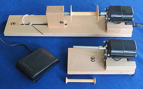 Available in 2 versions with a number of options, these electric bobbin winders speed up the winding process. (Click on the pictures to enlarge)