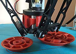 The Double-Ended Winder (shown right) holds both ends of the bobbin/spool and the spring loaded sliding tailpiece moves to support any size bobbin, pirn or spool from 1" to 8" (25 mm to 20 cm) with end holes similar to the Leclerc bobbin. The winder has 4 rubber feet to avoid scratching the surface it is used on and keep it stable so it does not need to be clamped down during use. An electronic speed control foot pedal is included. Note that some earlier pictures on this page show a locking pin on a cord which is no longer included in the design.